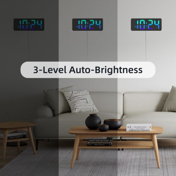 - 3-LEVEL BRIGHTNESS AUTO-DIMMING — High brightness for broad daylight, medium brightness for indoor night scene, low brightness for total darkness, ensures not to interfere with your sleep.
