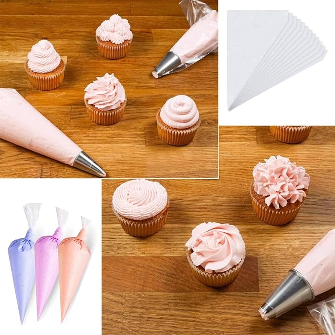 • Strong Grip: disposable small pastry bag for household use, In addition, the particle surface of the pipe bag is easy to handle, It prevents skidding or popping and is easy to grip, The perfect cake decorating supplies for beginners, bakers or cake decorating enthusiasts