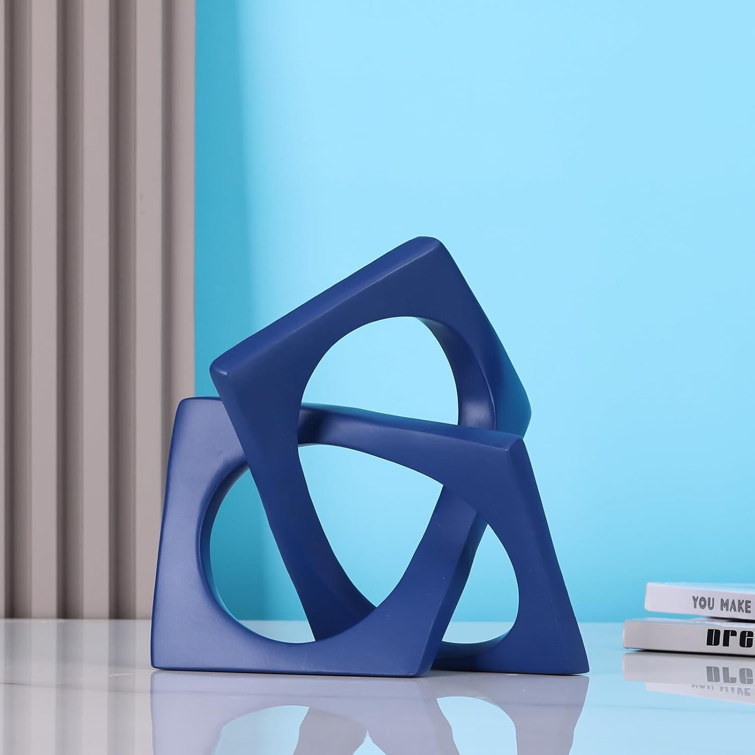 - 【Small décor items for shelf 】Our Geometric Art Blue knot Statue and Sculpture, Aesthetic appearance with special geometry. Add a whimsical touch to a bookshelf or coffee table with this rustic decorative accent.