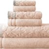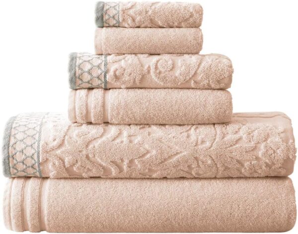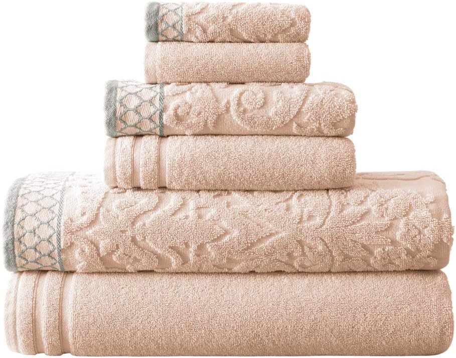 - SET INCLUDES: (2) Bath towels, (2) Hand towels, (2) Washcloths. 3 Towels are Jacquard, 3 Towels are Solid.