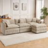 Be the first to review “112″ L-Shaped Modular Sectional Sofa with Armrests & Movable Ottoman – Coffee”