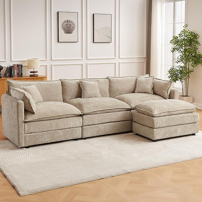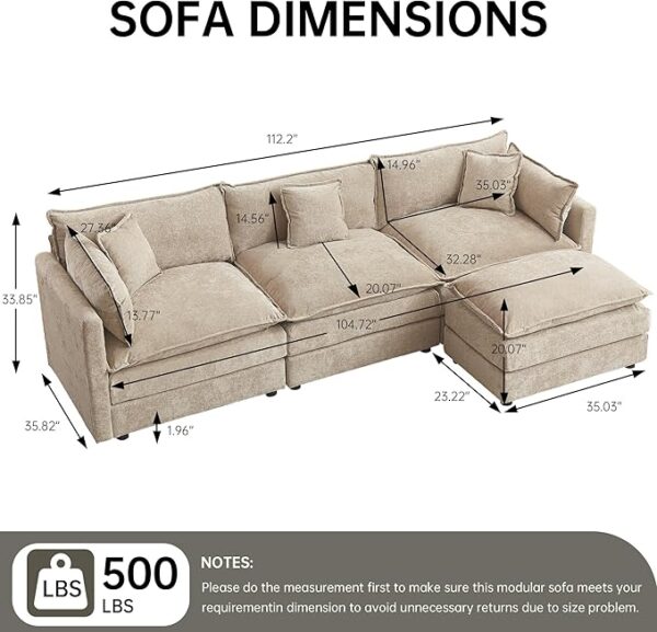 • Comfy Cloud Couch: This cloud couch sofa s crafted from premium chenille fabric, featuring thick seat cushions with high-resiliency foam to provide you a soft and cloud-like feeling, making it perfect for entertaining or relaxing, without collapsing even after prolonged sitting.