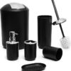 • Complete Bathroom Essentials Set: A full 6-piece bathroom accessories set that will keep your bathroom clean and orderly; the bathroom set is 1 mouthwash cup, 1 toothbrush holder, 1 lotion dispenser, 1 soap dish, 1 trash can, and 1 toilet brush.