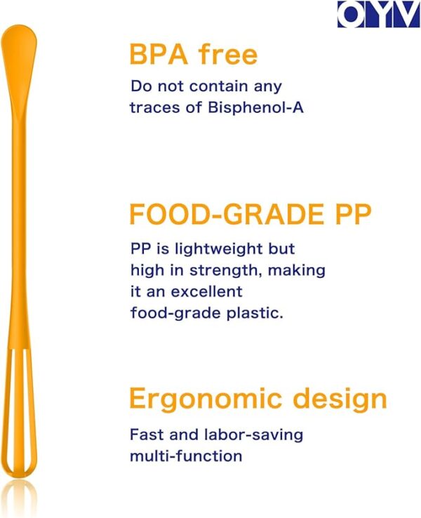 • Flexible & Durable: Thanks to its food-grade PP material, OYV is more pliable and long-lasting compared to the stainless steel mini whisk. It is also rust-free and effortlessly blends sauces. Its popular mini size makes it perfect for optimal whipping