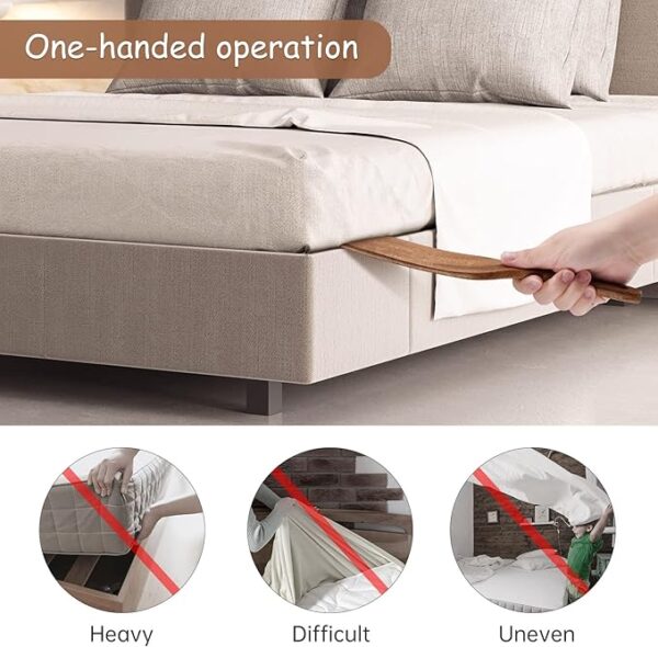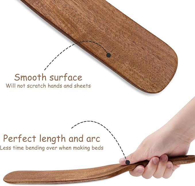 • ✅【Premium Material】Our bed making tool is made of high-quality teak wood that is strong, durable, and doesn’t break easily. It has a smooth surface that feels great in the hand and won’t scratch the sheets.