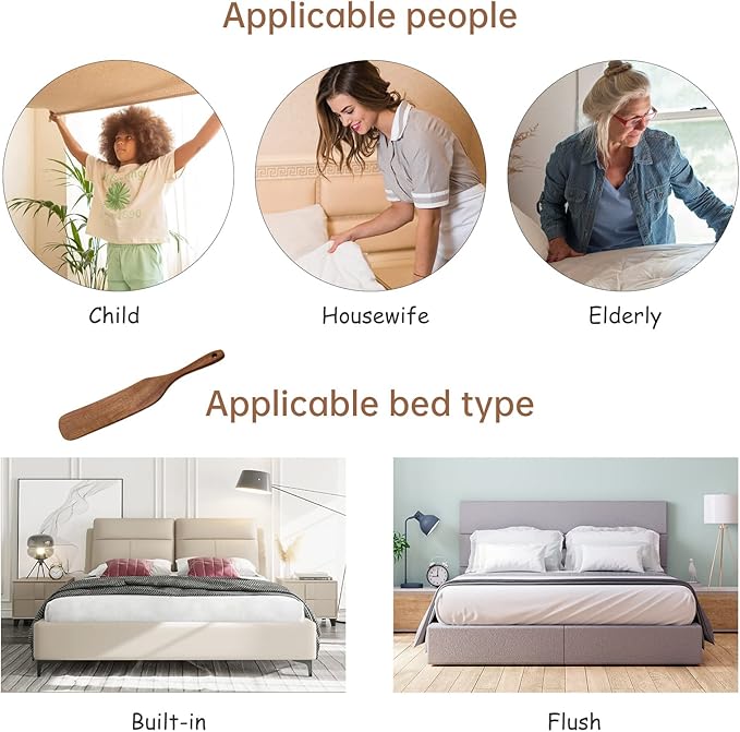• ✅【Making Bed with Ease】This sheet tucking tool helps simplify bed making. Use the bedsheet paddle to tuck your sheets tighter without having to elevate the heavy mattress, resulting in neat and clean sheets.