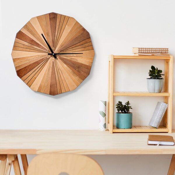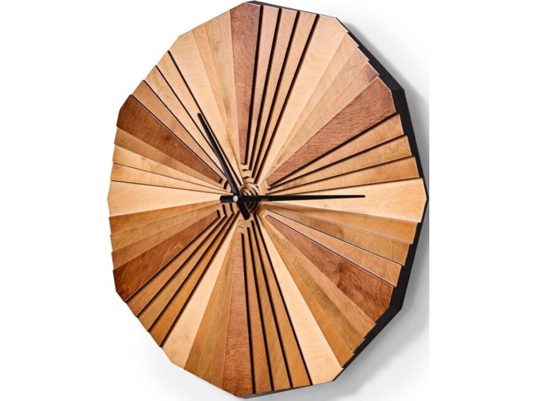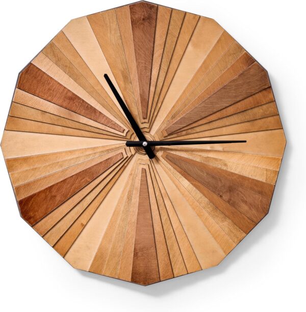 - [DESIGN] Geometric Unique Design parametric wood wall clock , parametric wood stains forming a color palette