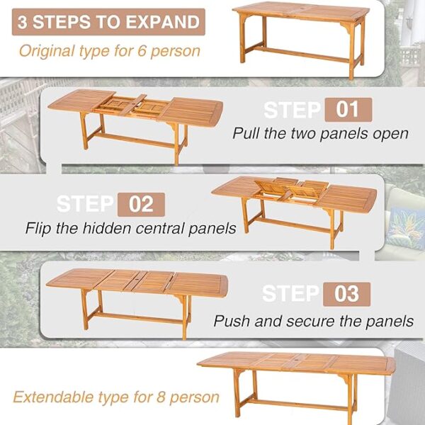 • Distinctively Expandable Design:This wooden dining table offers a unique extendable feature, allowing you to adjust its length from 63″ to 78.7″ and up to 94.5″ according to your specific requirements. The expanded size provides an ultra-spacious dining area, comfortably accommodating 6 – 8 people for dinners or parties.