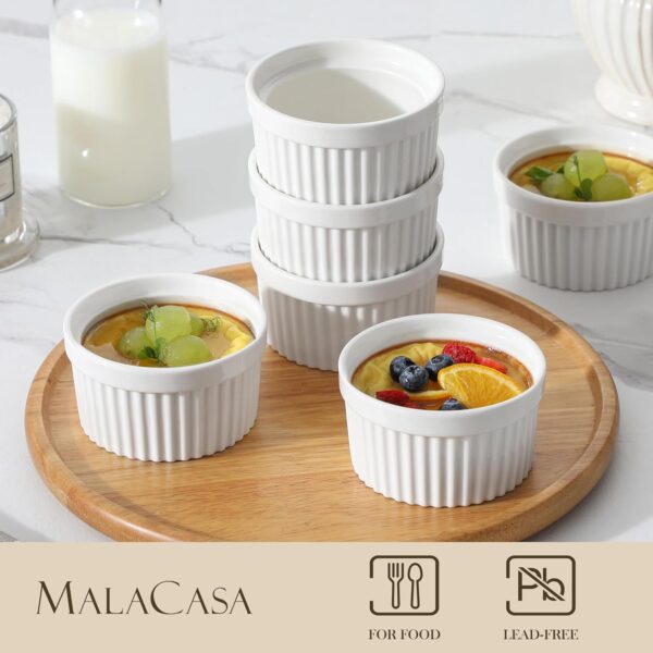 • 【ECO-FRIENDLY & INSULATING】MALACASA Custard Cups are porcelain, unlike plastic materials, making them reusable and eco-friendly. Compared to metal, porcelain offers superior insulation, keeping food tasting freshly cooked or preventing ice cream from melting quickly.