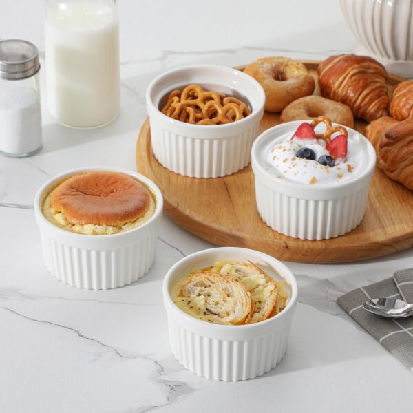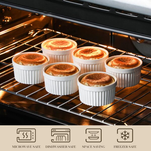 • 【ENHANCED DURABILITY】: Ramekins oven safe fired at 2552°F for increased heat resistance and durability compared to the old 2140°F firing temperature. These ceramic ramekins withstand temperatures up to 500°F, ideal for oven use.
