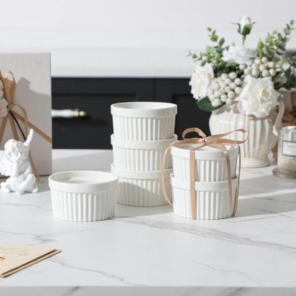 Porcelain Ramekins 8 oz – Oven Safe Soufflé & Custard Cups, Set of 6, White (RAMEKIN-DISH Series)