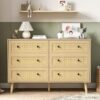 Rattan 6-Drawer Dresser – Boho Modern Chest with Black Handles, Natural Wood