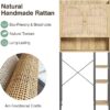 • ELEGANT AND SOPHISTICATED: Our rattan over toilet storage cabinet features wooden cabinetry with arched handmade rattan double doors and a sturdy black metal frame. The exquisite floor-standing storage cabinet fully demonstrates the charm of handmade rattan lines