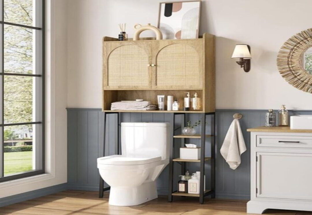 • HANDMADE RATTAN: Handmade rattan doors are cleverly used on over toilet cabinet, carving out exquisite arched rattan doors while retaining the natural texture of the rattan, creating a living space that combines ethnic style and personality