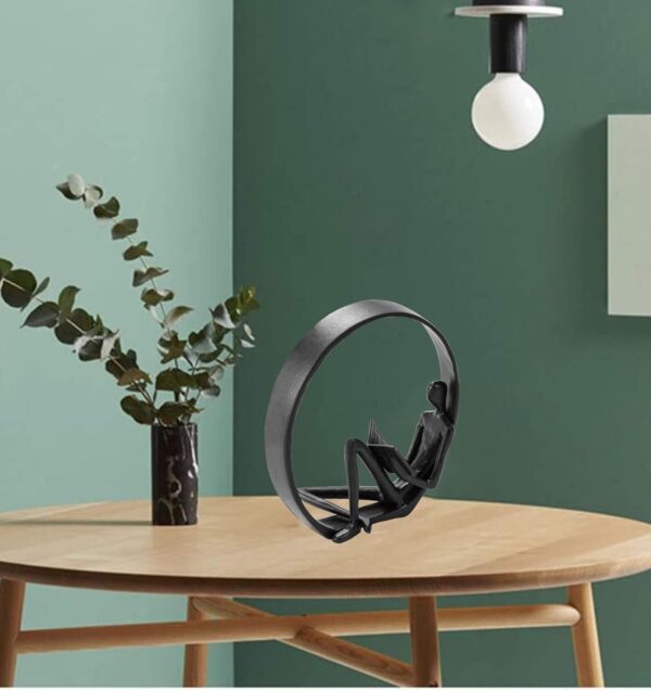 - EXQUISITE WORKMANSHIP: The iron reading figure bookshelf décor is made of wrought iron, The lovely reader statue is handcrafted by professionals that put time and effort into perfecting every detail. A modern and simple creative abstract figure add a touch of class and elegance to any home