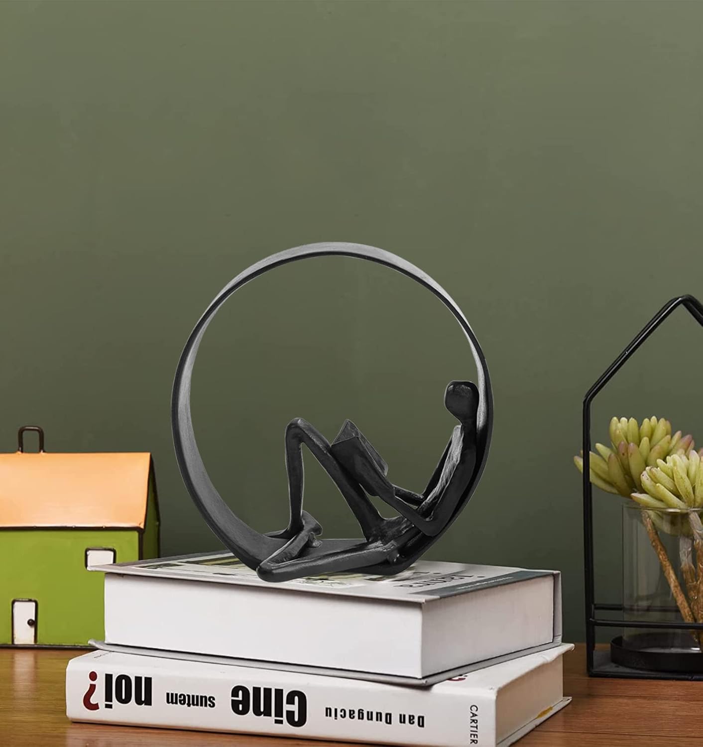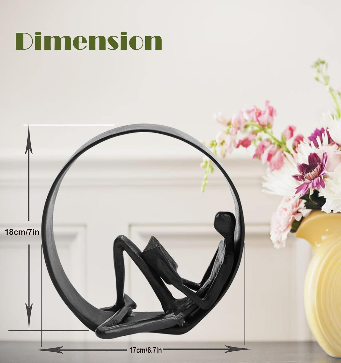 - EXQUISITE WORKMANSHIP: The iron reading figure bookshelf décor is made of wrought iron, The lovely reader statue is handcrafted by professionals that put time and effort into perfecting every detail. A modern and simple creative abstract figure add a touch of class and elegance to any home
