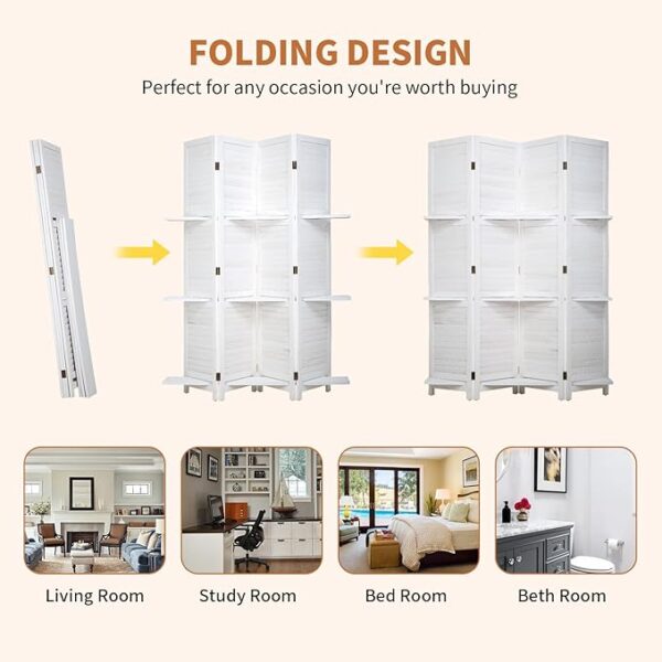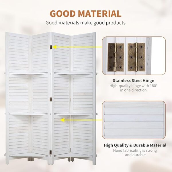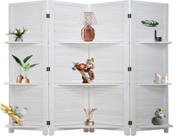 • 4 Panel Wooden Room Divider: This wall room divider with Shelf is perfect for creating private screen in your home or office. Made of high-quality wood, this room divider is both durable and stylish. It’s a good choice for partition room dividers.