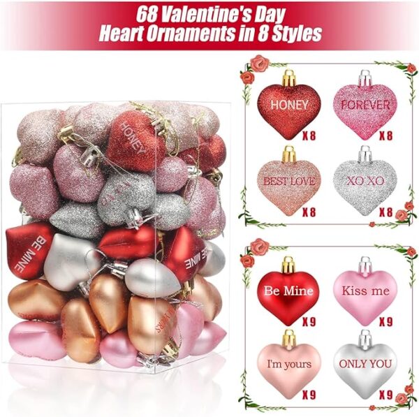 • What you will get: The Package includes 68 pieces of heart-shaped baubles ornaments with shiny surface and glitter surface, suitable for Valentine’s Day decorations