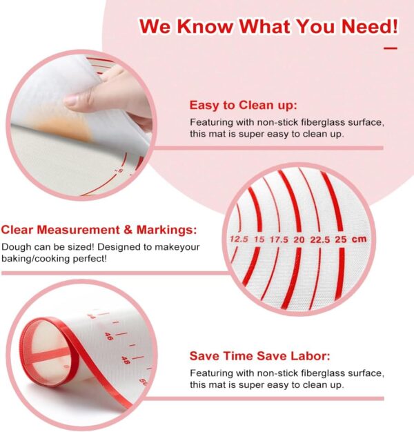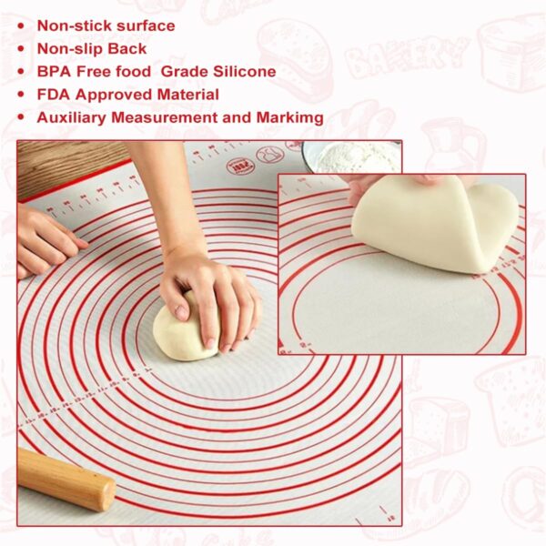 - 【 Non-Slip & Non-Stick 】 Our non-slid kneading mat lays perfectly flat on the countertop and does not move or bunch up as you roll out the dough. The nonstick silicone creates an ideal work surface not allowing your dough to stick to the mat.