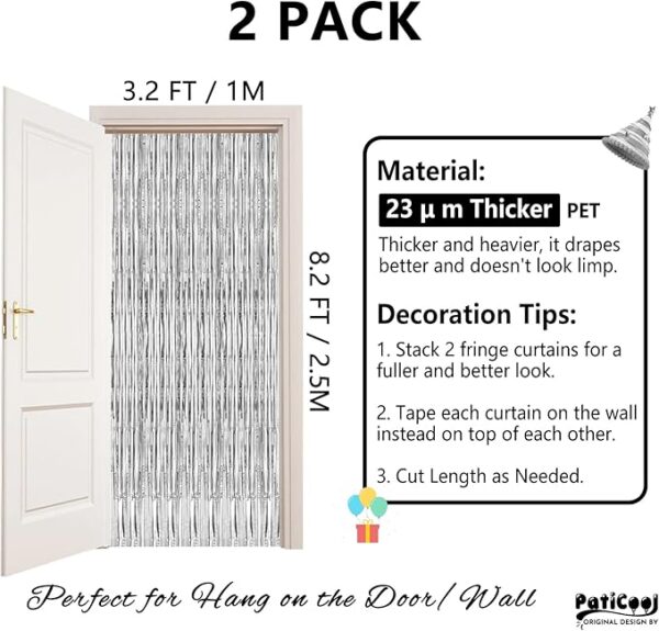 β’ π.π π± π.π π π | π ππππ – This silver metallic streamers are long enough to decorate doors or walls, you can freely adjust the length, width and thickness of them according to the desired scene. Paste them side by side for a wider range of decoration, stack 2 or more to achieve a thicker and denser effect.