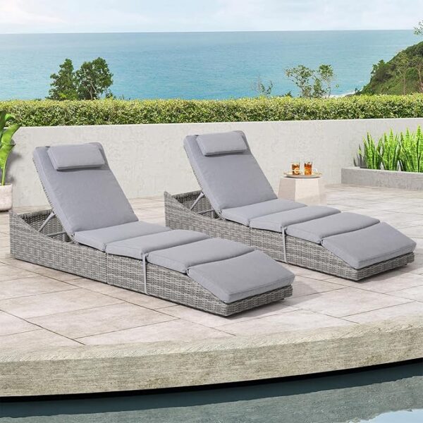 • 【NO ASSEMBLY REQUIRED】: The chaise lounge chairs for outside are delivered to you fully assembled, so it is ready to use and enjoy with family and friends. Cushions of the recliner chair with removable covers make cleaning and maintenance easier.