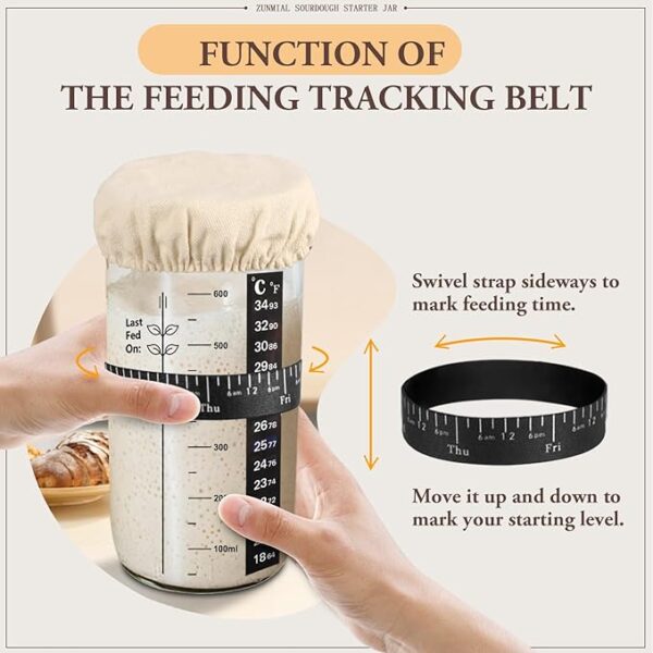 • Complete accessories & simple operation. This sourdough starter kit are specially designed to make the starter process easier, and suitable for amateurs and experts. The kit has a long-handled spatula, temperature sticker, feeding indicator strip, breathable cloth cover, and aluminum lid.