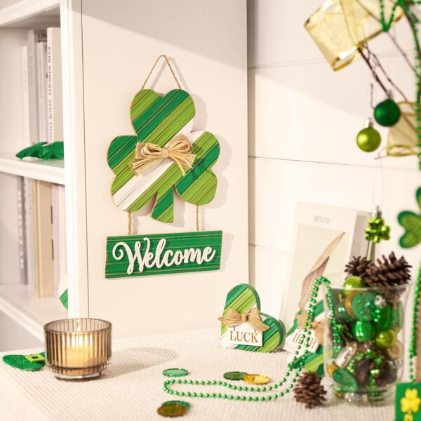 - 【Easy to Install】With a sturdy rope included, this St Patrick’s Day decorations is ready to hang right out of the box. It’s perfect for doors, walls or shelves, easily adding a festive touch to anywhere you choose.