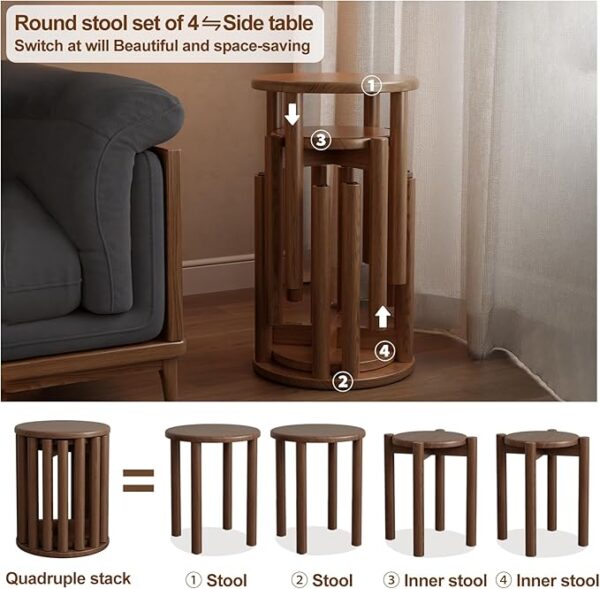 • 【Space-Saving Stackable Design】:The innovative stackable design allows you to store all 4 wooden stools efficiently, saving valuable floor space. Perfect for small apartments, classrooms, or anyone looking to maximize their living area without sacrificing functionality