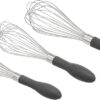 • 3-piece wire whisk set includes 9-inch, 10-inch, and 11.5-inch sizes