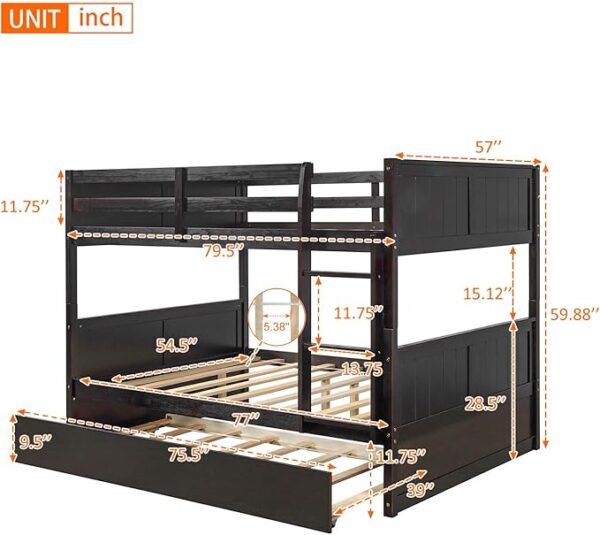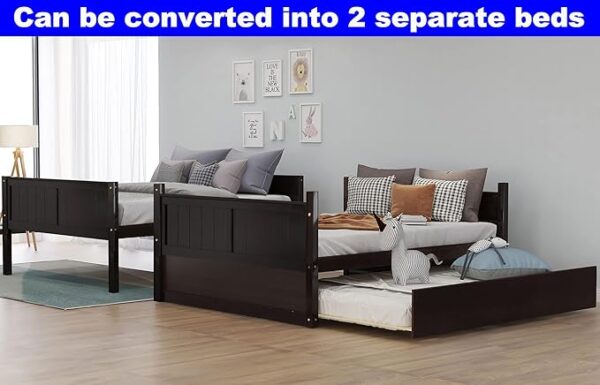 Be the first to review “Solid Wood Full Over Bunk Bed with Trundle, Safety Guardrail & Ladder, Convertible to 2 Beds, Espresso”