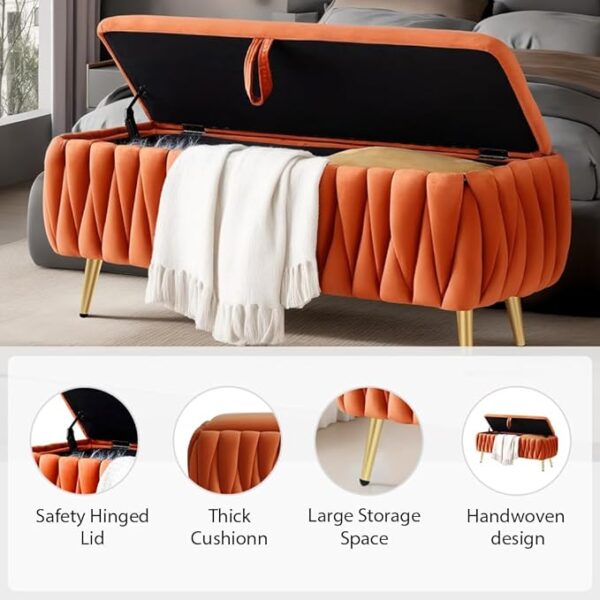 • Comfortable Storage Bench: The surface of our tufted storage ottoman bench is covered with soft velvet fabric, velvet ottoman surface reveals the medieval retro style, which is elegant and graceful. The interior is padded by high-density foam, which is soft, breathable, skin-friendly, and resistant to deformed.