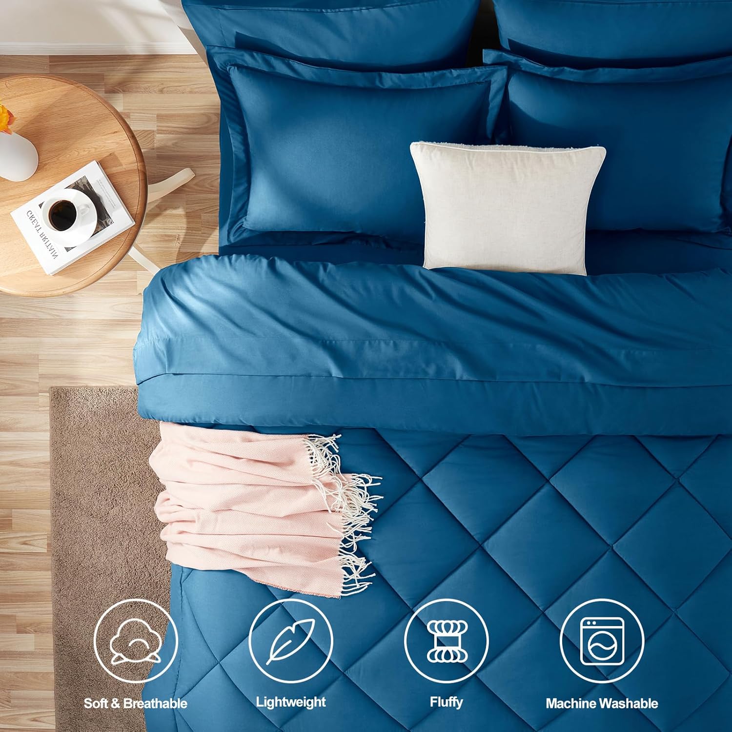 - What You Can Get: Queen Size bed in a bag includes 1 Comforter 88″x88″, 2 Pillow Shams 20″x26″, 1 Flat Sheet 90″x102″ , 1 Fitted Sheet 60″x80″+14″ and 2 Pillowcase 20″x30″; Our bed in a bag is packaged in a vacuum bag, so you can dry it in low heat or tap the comforter gently while baking it in the sun to fluffy again
