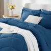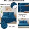 - Elaborate Design: The elastic deep pocket fitted sheet fits mattress max up to 14″ deep. That can always keep non-slip no matter how you twist and turn in your bed. The comforter features durable box stitching which offers sophisticated look alongside simplicity and will also stable inside filling.