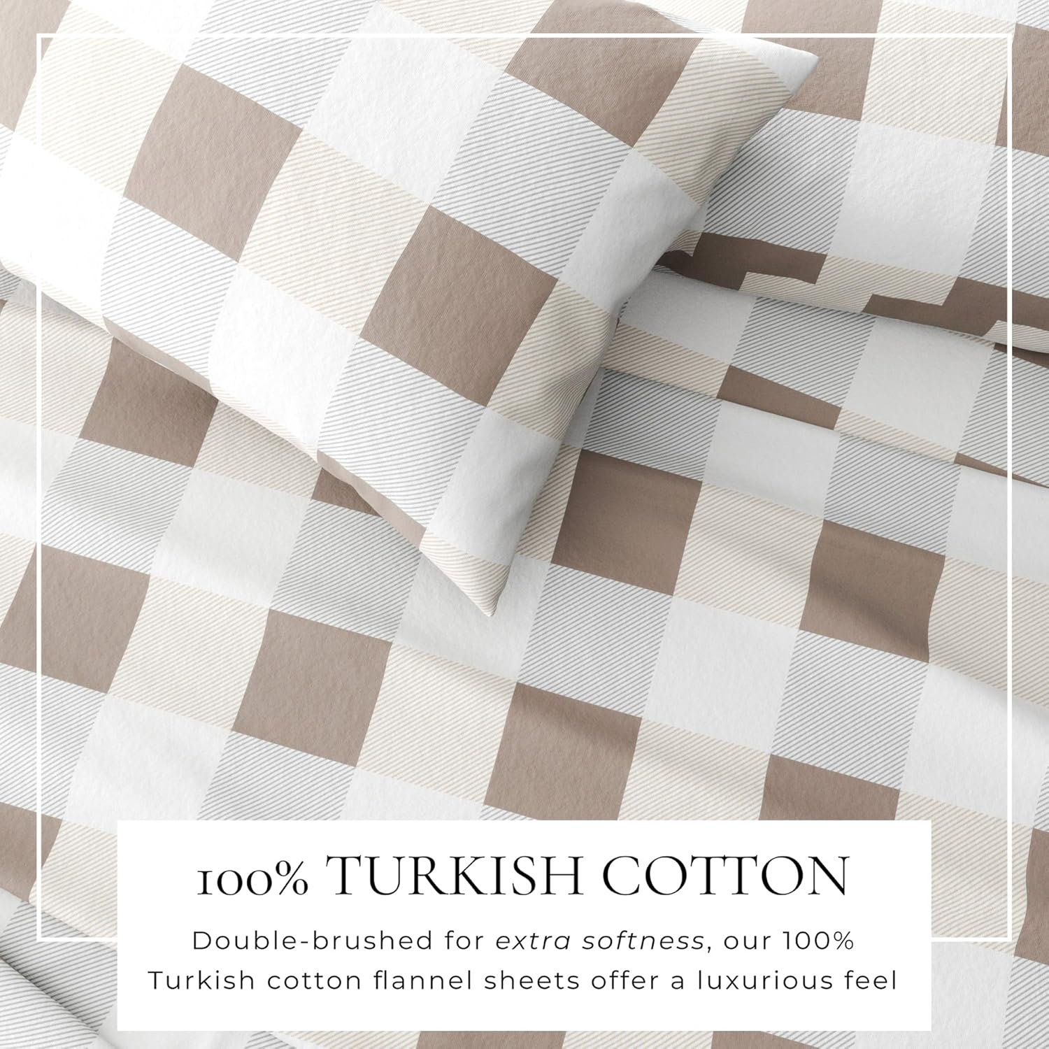 - 100% Turkish Cotton: Flannel sheets crafted with natural Turkish cotton fibers – the softest of all cotton. These sheets offer an unmatched, cozy feel and are double-brushed for an extra soft and plush texture.