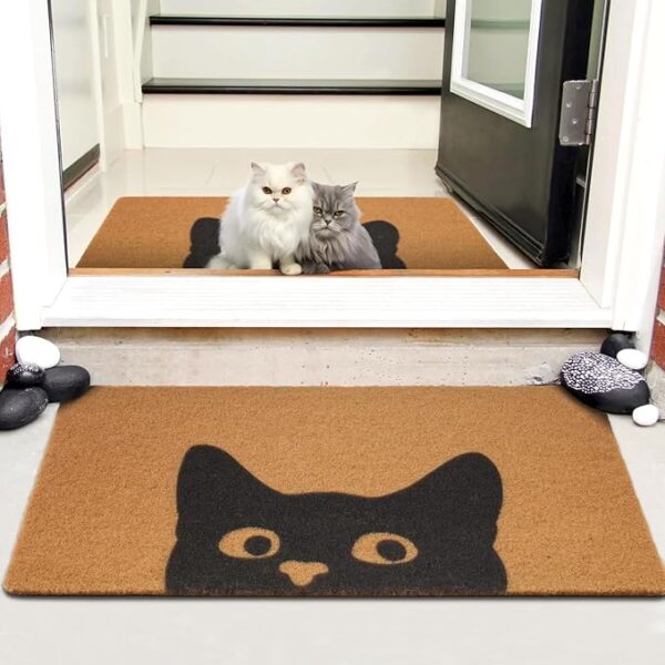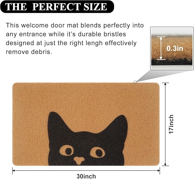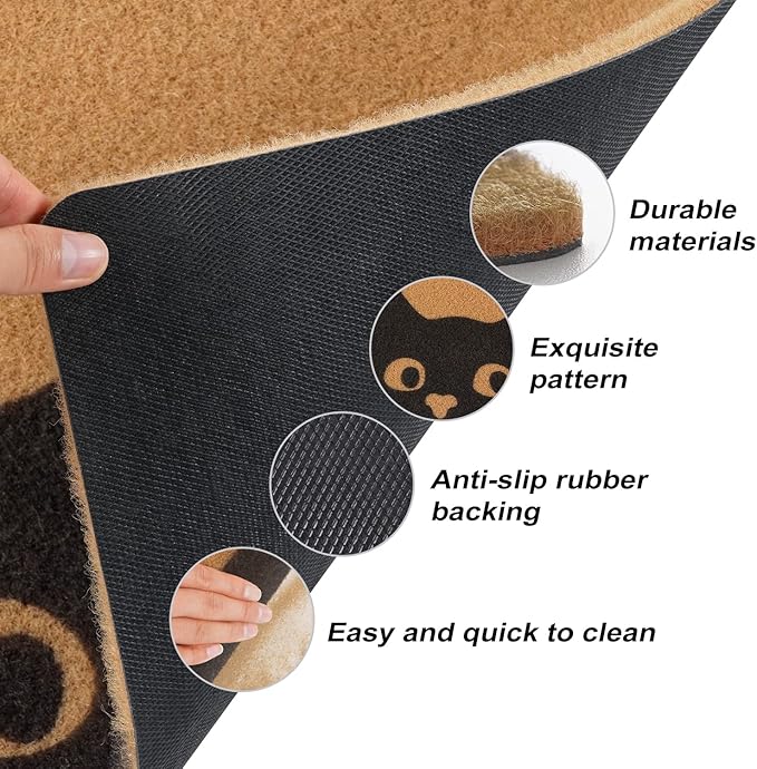 • 😸【Durable & Easy to Clean】Made of 100% high quality faux coir fiber, our stylish cat door mats are durable and tough, no split, no hair loss and can withstand any weather. This entrance rug is a great low-maintenance. Simply shake it off or sweep away all dirt and debris.
