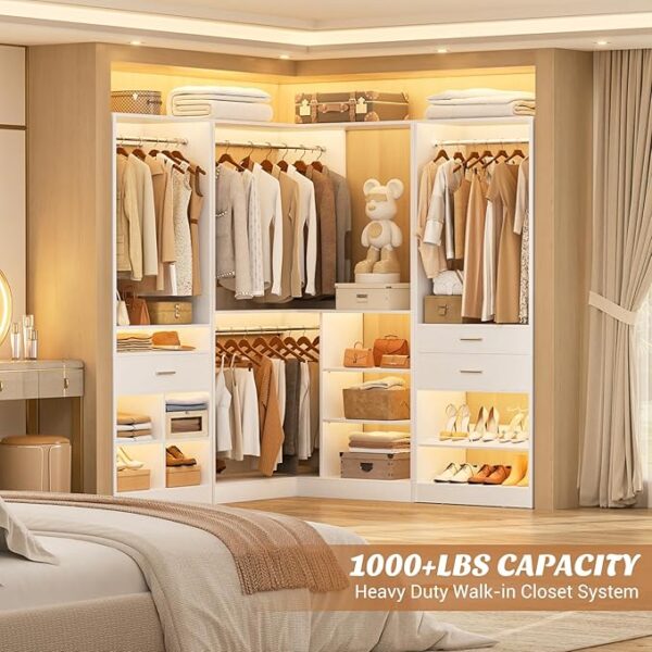 • 【Easy Assembly and Movable】Transforms cluttered closet into boutique style display within 30 minutes. This closet organizer system offers ease of assembly and clear instructions, even for DIY beginners. You also don’t have to worry about tipping over with tipping restraint hardware included. The freestanding design enable smooth room-to-room transitions. It is easy to move around if you need to change a place without damage to the walls.