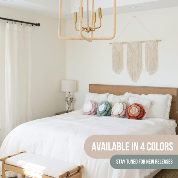 - Boho Modern Decor Pillows: Embrace a blend of boho and modern style with these tan throw pillows. The flower cushion design adds a touch of charm for an earthy room decor aesthetic, while the minimalistic color palette keeps your space looking fresh and stylish. Guests will compliment your new flower plush.