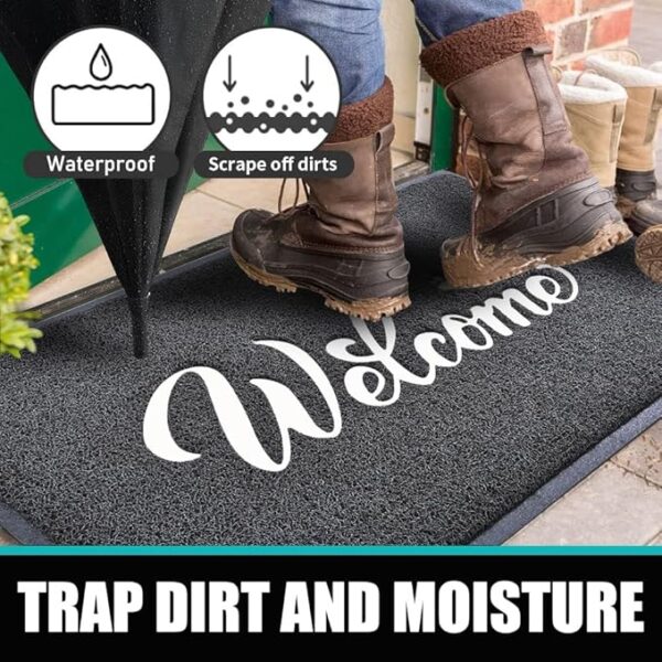 • Beautifully Crafted Design:Our doormats are made of environmentally friendly PVC material, with the word “WELCOME” beautifully imprinted in the center. This carefully crafted doormat serves as the perfect addition to your entrance, instantly creating a welcoming and inviting ambiance. As guests approach your home, they will be greeted with a heartfelt message that sets the tone for their visit